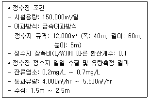 A정수장에서 소독조건이 다음과 같을 때 불활성화비 계산을 위한 CT계산값 (mg/Lㆍmin)은?