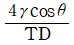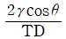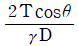 물에 직경 D 의 모세관을 세웠 을 때, 물의 표면장력을 T, 물의 단위중량을 γ, 접촉각을 θ라 할 때, 모세관현상에 의한 물의 상승고를 나타내는 식은?