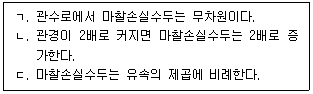 관수로 흐름에서 발생하는 손실수두에 관한 설명으로 옳은 것을 모두 고른 것은?