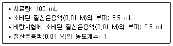 먹는물수질공정시험기준상 적정법으로 염소이온을 측정한 결과가 다음과 같을 때 염소이온의 농도(mg/L)는?