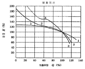 다음 그림은 펌프형식에 따른 양정곡선이다. 곡선 1이 표시하는 펌프의 형식은?