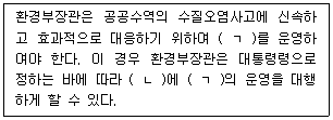 물환경보전법상 수실오염사고 대응에 관한 설명이다. ( )에 들어갈 내용으로 모두 옳은 것은?