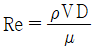 이다. 여기서, μ=점성계수, ρ=유체의 밀도, V=단면 평균유속, D=관경이다.