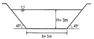 아래 그림과 같은 사다리꼴 인공수로의 단면적(A)과 경심(R)은 약 얼마인가?