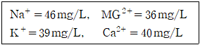 시료의 양이온 농도를 측정한 결과가 다음과 같을 때, 총경도(mg CaCO3/L)는? (단, Na+, Mg2+, K+, Ca2+의 원자량은 각각 23, 24 ,39, 40으로 한다.)