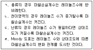 관수로 흐름의 마찰손실계수에 관한 설명으로 옳은 것을 모두 고른 것은?
