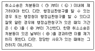 다음은 「행정소송법」상 제소 기간에 대한 설명이다. ㉠~㉤에 들어갈 내용은? (순서대로 ㉠, ㉡, ㉢, ㉣, ㉤)