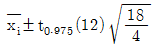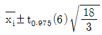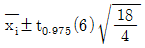 어떤 공장에서 제품의 강도에 영향을 미칠 것으로 생각되는 온도(A) 3수준과 촉매량(B) 4수준으로 하여 반복이 없는 2요인 실험(이원배치 실험)을 실시하고 분산분석한 결과 오차항의 제곱합으로 108을 얻었다. 요인(인자) A의 각 수준에서 모평균의 95%신뢰구간은?