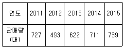 A자동차회사의 최근 5년간의 판매량이 다음과 같을 때 최소자승법에 의한 2016년도 예측판매량은 몇 대인가?