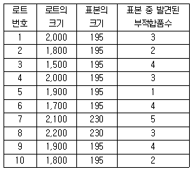 최근 10개의 로트로부터 다음과 같은 검사기록을 얻었다. 공정평균 부적합품률은 약 얼마인가?