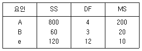난괴법에 의한 실험에서 다음의 분산분석표를 얻었다. 변량요인 B의 분산추정값