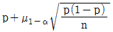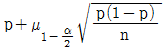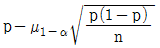 시료부적합품률(p)을 활용하여 모부적합품률(P)의 양측 신뢰구간을 추정하려고 할 때, 신뢰구간의 하한값을 구하는 계산식은? (단, n은 충분히 크고 정규분포를 따른다.)