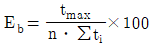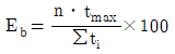 라인밸런스 효율(Eb)를 구하는 공식은? (단, n: 작업장(공정) 수, tmax : cycle time, ∑ti : 공정시간의 합계이다.)