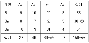다음은 결측치가 있는 모수모형 2요인실험의 데이터이다. 결측치 예측에 관한 설명으로 틀린 것은?