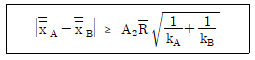 관리도에서 2개의 층 A, B간 평균치의 유의차를 검정하는 다음 의식을 적용하기 위한 전체조건으로 틀린 것은?