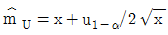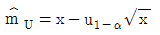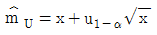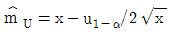양측 신뢰구간 추정 시 모부적합수(m)에 대한 신뢰구간의 신뢰상한값에 관한 추정식으로 맞는 것은? (단, x는 부적합수이다.)