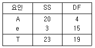 요인 A를 실험일로 하여 동일횟수 반복 실험을 실시한 후 다음의 분산분석표를 얻었다. 실험일 간의 산포 크기를 나타내는 변량요인 A의 분산(