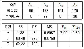 다음은 기계간 부적합품의 차이가 있는지를 알아보고자 분산분석을 실시한 결과이다. 실험결과에 대한 설명으로 가장 거리가 먼 것은?