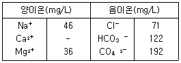 다음은 수질조사에서 얻은 결과인데, Ca2+ 결과치의 분실로 인하여 기재가 되지 않았다. 주어진 자료로부터 Ca2+ 농도(mg/L)는?(오류 신고가 접수된 문제입니다. 반드시 정답과 해설을 확인하시기 바랍니다.)