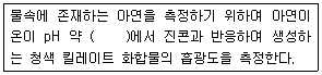 자외선/가시선 분광버으로 아연을 정량하는 방법으로 ( )에 옳은 내용은?