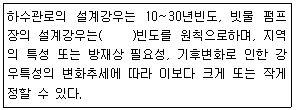 우수배제계획에서 계획우수량의 설계강우에 관한 내용으로( ) 에 알맞은 것은?