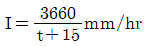 , 면적 2.0km2, 유입시간 6분, 유출계수 C = 0.65, 관내유속이 1m/sec인 경우, 관길이 600m인 하수관에서 흘러나오는 우수량(m3/sec)은? (단,합리식 적용)