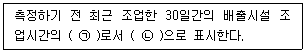 배출시설에 대한 일일기준초과배출량 산정에 적용되는 일일율량은(측정유량×일일조업시간)이다. 일일유량을 구하기 위한 일일조업시간에 대한 설명으로 ( )에 알맞은 것은?