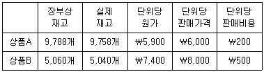 대한상공(주)의 2016년 12월 31일 재고자산은 다음과 같다. 기말 재고자산에 대하여 저가법을 적용할 때 재고자산평가손실은 각각 얼마인가?