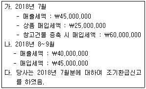 (주)대한유통의 다음 자료를 기초로 한 2018년 2기 예정신고 시 환급세액은 얼마인가?