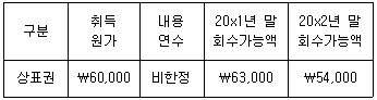 K사가 20x1년 초에 취득한 상표권과 관련된 자료는 아래와 같으며, 아래의 회수가능액은 공정가치와 동일한 것으로 간주한다. K 사는 상표권에 대해 재평가 모형을 적용하며, 무형자산을 사용하면서 관련 재평가잉여금을 이익잉여금으로 대체하는 방법을 선택 하지 않고 있다. 20x2년 말에 상표권에 대해 손상징후가 발생하였다. K사가 20x2년도에 상표권 관련 당기손익으로 인식할 손상 차손은 얼마인가?