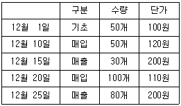 다음은 ㈜상공의 12월 동안 거래내역이다. 재고자산의 원가흐름으로 선입선출법을 가정할 경우, 12월의 매출총이익은 얼마인가?