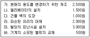 다음의 후속원가 중 발생시점에 당기손익으로 인식해야 하는 금액의 합계액은 얼마인가?
