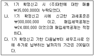 (주)상공 20X1년 1기에 대한 부가가치세 신고에 대해 세무조사 결과 다음과 같은 누락이 발견되었다. 이로 인해 ㈜상공이 추가로 납부해야 할 부가가치세와 납부불성실가산세를 바르게 계산한 것은? (단, 영세율 및 면세 대상 매출은 없다.)(순서대로 추가납부 부가가치세, 납부불성실가산세)