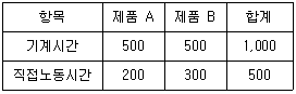 (주)한국은 제품 A와 제품 B를 생산하며 회사전체의 고정제조간접원가가 ₩100,000이 발생하였다. 고정제조간접원가의 배부기준으로 기계시간과 직접노동시간을 사용할 때 각 기준별로 제품 A에 배부되는 제조간접원가는 각각 얼마인가?(순서대로 기계시간, 직접노동시간)