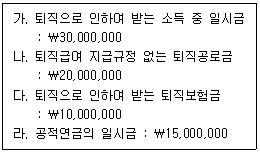 다음은 20X1년도 거주자 이상공씨의 소득 자료이다. 퇴직소득은 얼마인가?