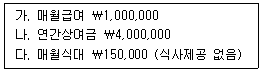 다음 자료에 의하여 연간 근로소득금액을 계산하면 얼마인가?