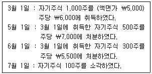 20X1년 중에 (주)서울은 다음과 같은 자기주식 거래를 하였다. 아래의 자기주식 거래로 인하여 자본에 계상될 자기주식처분이익 증가분은 얼마인가?