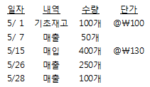 ㈜서울은 재고실사법을 사용하여 재고자산 금액을 결정하고 있다. 평균법을 적용한 5월 말 현재의 재고자산 금액을 계산하면 얼마인가? (단, 수량부족은 발생하지 않았다고 가정한다.)