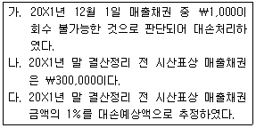 20X1년 영업을 개시한 (주)상공의 거래내역이다. 결산수정분개 후 순매출채권의 금액은 얼마인가?