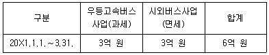 (주)상공회운수는 우등고속버스사업과 시외버스사업에 공통으로 사용할 목적으로 수선설비를 20X1년 3월 15일 ₩20,000,000 (부가가치세 제외)에 매입하였다. (주)상공회운수의 공급가액 명세가 다음과 같을 때 제1기 예정신고에 있어서 이 수선설비의 매입세액 중 불공제 되는 금액은?