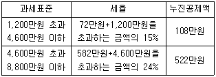 김한국씨의 과세표준은 5,000만원이다 다음의 기본세율표를 참조하여 산출세액을 계산하시오.