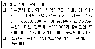 다음 자료에 의하여 거주자인 근로자 갑의 의료비세액공제 대상 의료비를 계산하면 얼마인가?