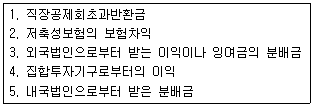 다음 자료를 보고 배당소득에 해당하는 것은 몇 개인지 고르시오.
