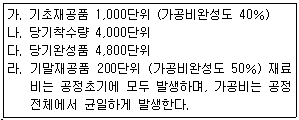 다음은 종합원가계산시스템을 채택하고 있는 어느 한 부문의 자료이다. 평균법에 의하여 재료비와 가공비의 완성품환산량을 계산하면 얼마인가?