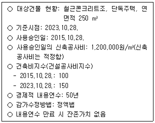 다음 자료를 활용하여 원가법으로 산정한 대상건물의 시산가액은? (단, 주어진 조건에 한함)