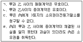 甲은 자신의 X토지를 乙에게 증여하고, 세금을 아끼기 위해 이를 매매로 가장하여 乙명의로 소유권이전 등기를 마쳤다. 그 후 乙은 X토지를 內에게 매도하고 소유권이전등기를 마쳤다. 다음 설명 중 옳은 것을 모두 고른 것은? (다툼이 있으면 판례에 따름)
