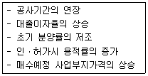 다음 중 아파트개발사업을 추진하고 있는 시행사의 사업성에 긍정적 영향을 주는 요인은 모두 몇 개인가? (단, 다른 조건은 동일함)