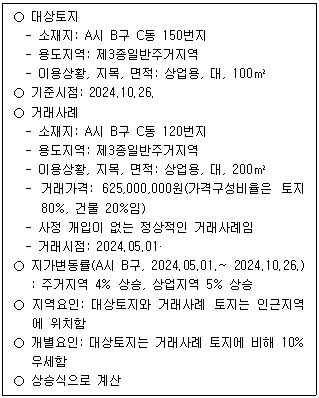 다음 자료를 활용하여 거래사례비교법으로 산정한 대상토지의 시산가액은? (단, 주어진 조건에 한함)