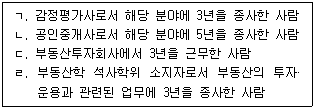 부동산투자회사법령상 자기관리 부동산 투자회사가 상근으로 두어야 하는 자산운용 전문인력의 요건에 해당하는 사람을 모두 고른 것은?