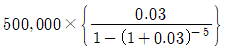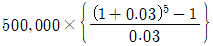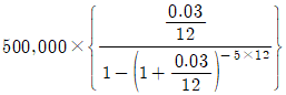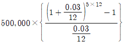 A는 매월 말에 50만원씩 5년 동안 적립하는 적금에 가입하였다. 이 적금의 명목금리는 연 3%이며, 월복리 조건이다. 이 적금의 미래가치를 계산하기 위한 식으로 옳은 것은?(단, 주어진 조건에 한함)